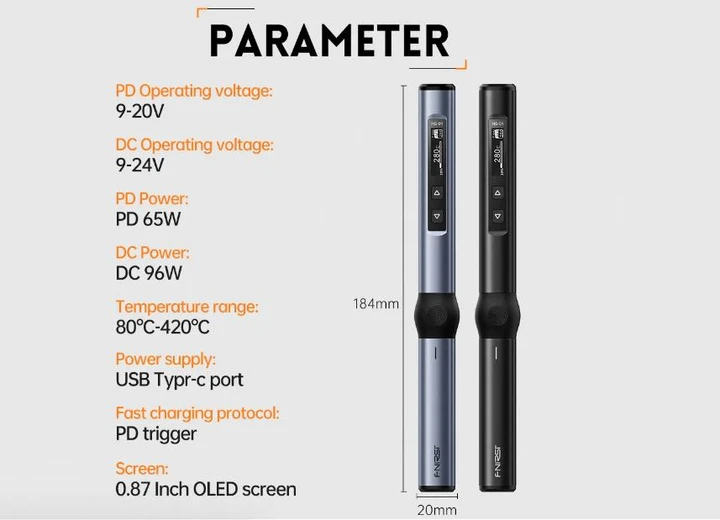 • Інформативний OLED-дисплей: На дисплеї відображається вся необхідна інформація про стан паяльника, включаючи температуру, напругу живлення та рівень заряду акумулятора.