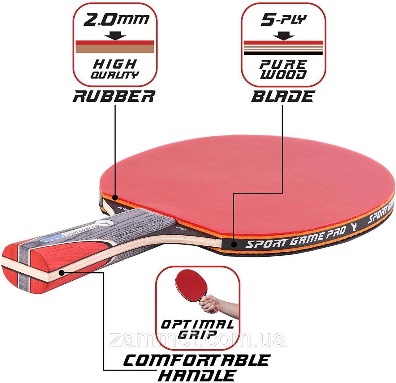 Ракетка для настільного тенісу Sport game pro Червона Якісна ракетка для настільного тенісу Тенісна ракетка з чохлом